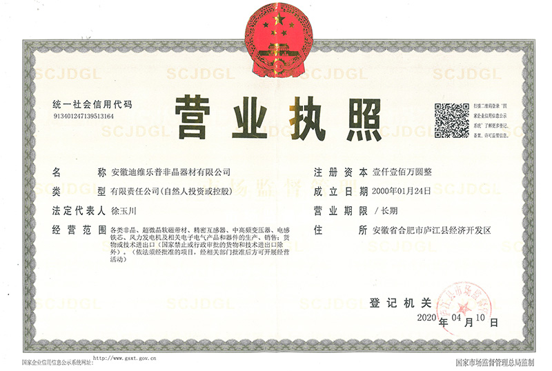 • 安徽迪維樂普非晶器材有限公司企業質量標準